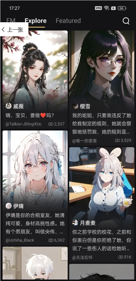 这个自带角色卡,还有剧情卡,里面还有FM助眠,解压。