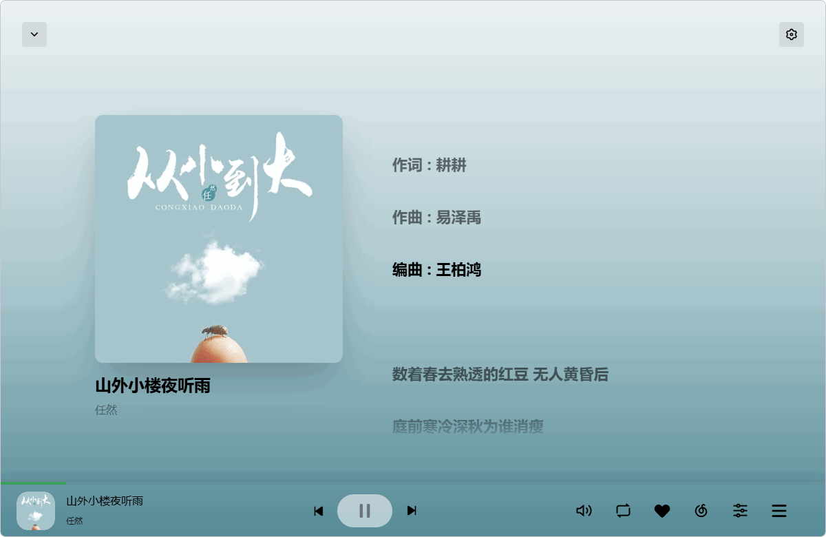 沉浸式歌词显示(点击左下角封面进入)