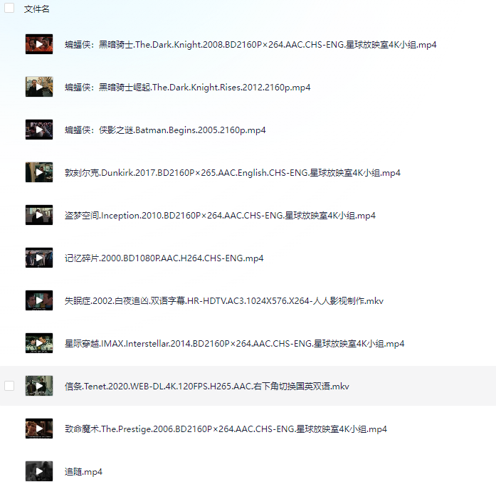 诺兰电影部分4K合集中英字幕