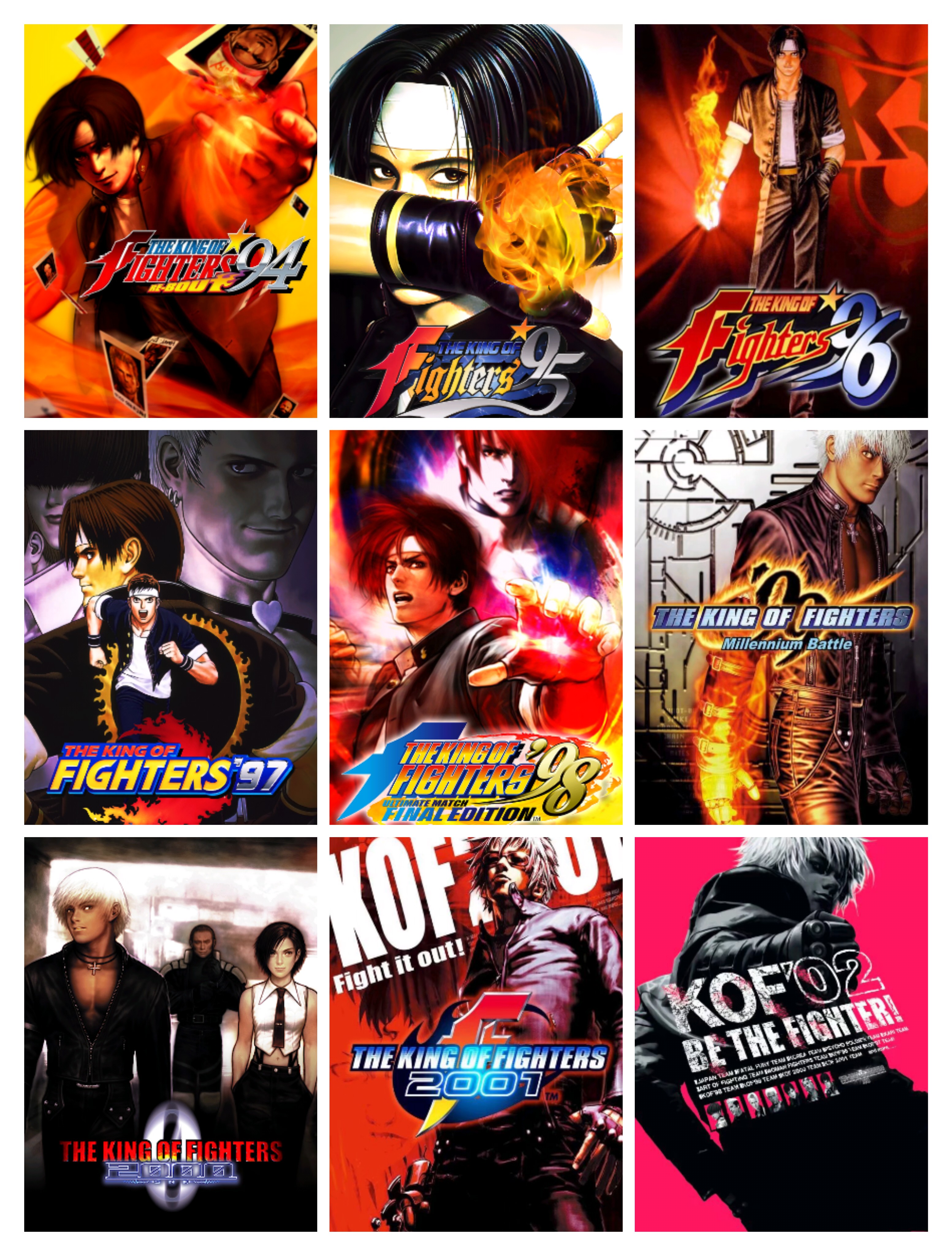 拳皇94、拳皇95、拳皇96、拳皇97、拳皇98、拳皇99、拳皇2000、拳皇2001、拳皇2002、拳皇2003、拳皇XI(拳皇11)、拳皇XII(拳皇12)、拳皇XIII(拳皇13)、拳皇XIV(拳皇14)、拳皇XV(拳皇15)