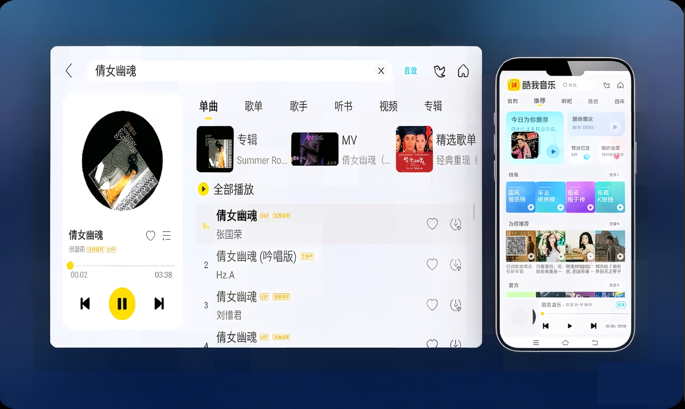 无损音质支持: 支持 FLAC、APE、WAV 等无损格式在线播放与下载。